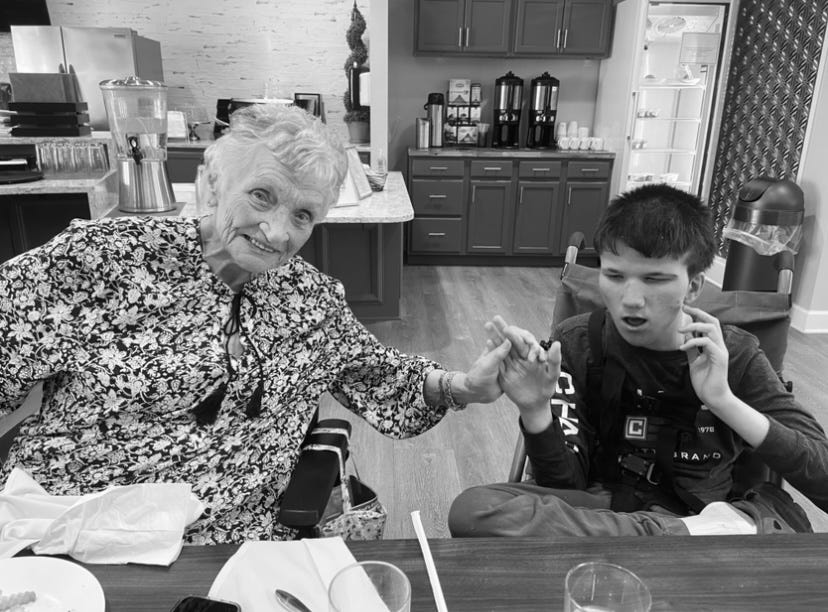 (Image is Luke with his 91 year old grandma, both who require care)